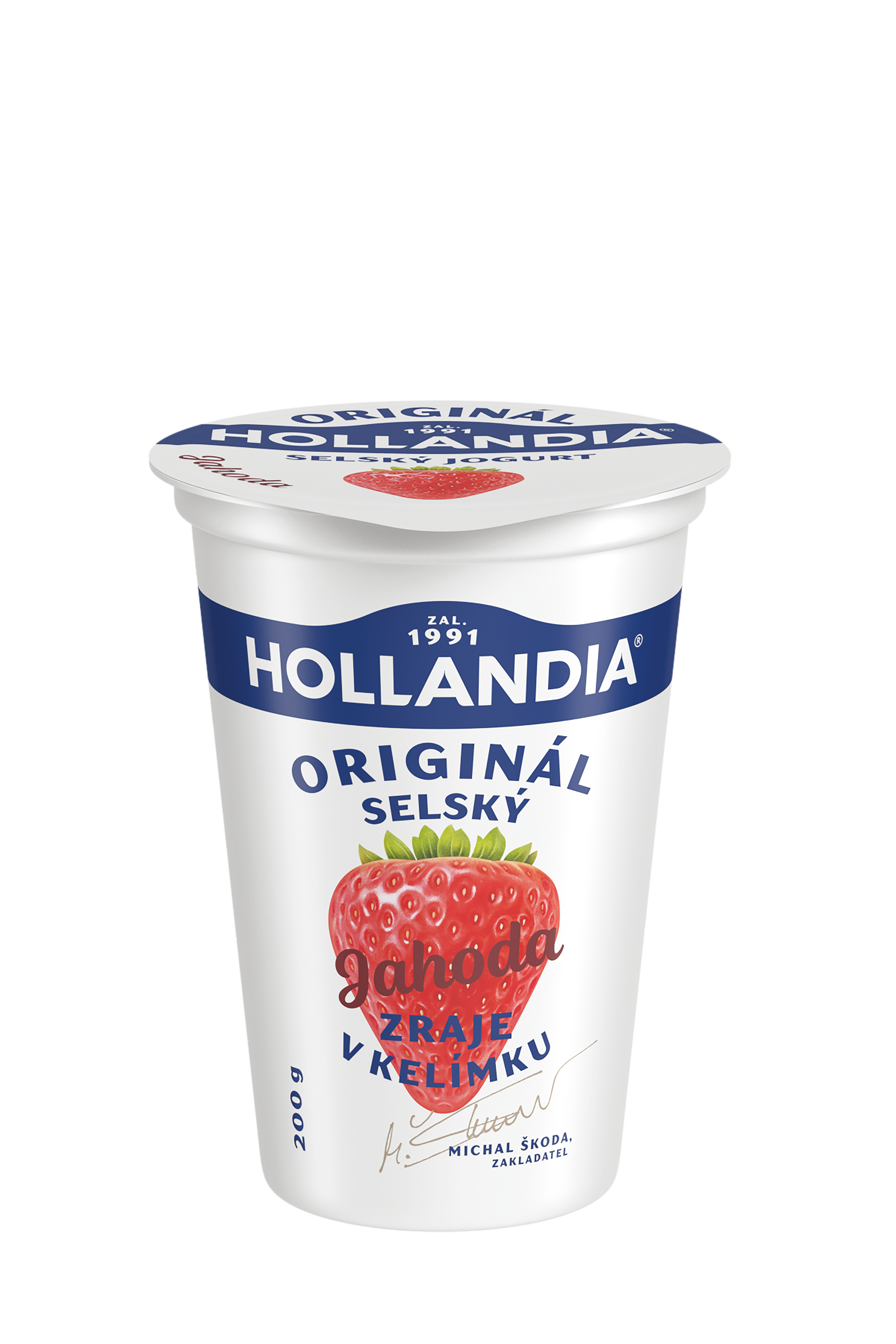 Selský jogurt vyráběný tradičním způsobem zrání mléka v obalu s přídavkem zdraví prospěšných bakterií Bifidobacterium a Lactobacillus acidophilus. Jahodová složka je 100% přírodní a z 55 % ji tvoří kousky jahod.